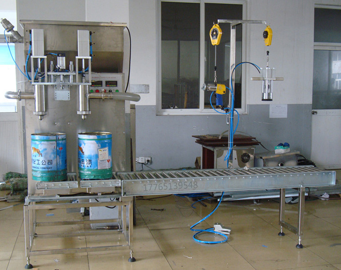 25千克液體雙頭液體灌裝機(jī)適用于化工產(chǎn)品、油脂、食品原料等定量灌裝。