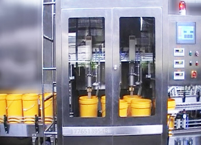 操作流程通常包括以下步驟:操作者僅需簡(jiǎn)單設(shè)定好灌裝重量,按下[啟動(dòng)]按鈕,再將擺放到空桶輸送機(jī)上。液體灌裝機(jī)就會(huì)自動(dòng)將空桶輸送到位并推入磅臺(tái),然后自動(dòng)將灌裝頭插入桶內(nèi),并將空桶自動(dòng)去皮后打開(kāi)灌裝閥門(mén),精確地雙速灌裝;灌裝結(jié)束,灌裝頭自動(dòng)提升至桶外,輸送機(jī)自動(dòng)將灌裝完成的包裝桶送出,人工旋蓋并擺放到托盤(pán)即告完成。