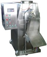 將閥口包裝袋套在加料嘴上,按動(dòng)“允加”按鈕,這時(shí)壓袋氣缸開(kāi)始工作并壓住袋口,控制器將包裝袋重量自動(dòng)去除,破拱電機(jī)緩慢轉(zhuǎn)動(dòng),保證下料暢通。加料螺旋高速轉(zhuǎn)動(dòng)迅速將物料灌入袋中,隨袋中空氣一起溢出的粉塵通過(guò)吸塵器由除塵器吸走,振動(dòng)裝置同時(shí)啟動(dòng)將托盤(pán)上袋中物料振實(shí)充滿袋角。待加料快到設(shè)定值時(shí),加料螺旋進(jìn)行減速慢加,到設(shè)定值時(shí),加料停止。誤差<0.3%。這時(shí)壓袋氣缸松開(kāi)袋口,將包裝袋放在皮帶輸送機(jī)上及時(shí)送出。