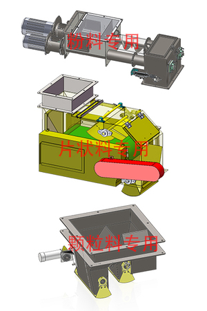 顆粒、片狀料、粉料有不同流動(dòng)特性,針對(duì)特性采用不同的雙螺桿、皮帶輸送、閘門(mén)與電磁振動(dòng)等專(zhuān)業(yè)進(jìn)料機(jī)構(gòu)定量秤。